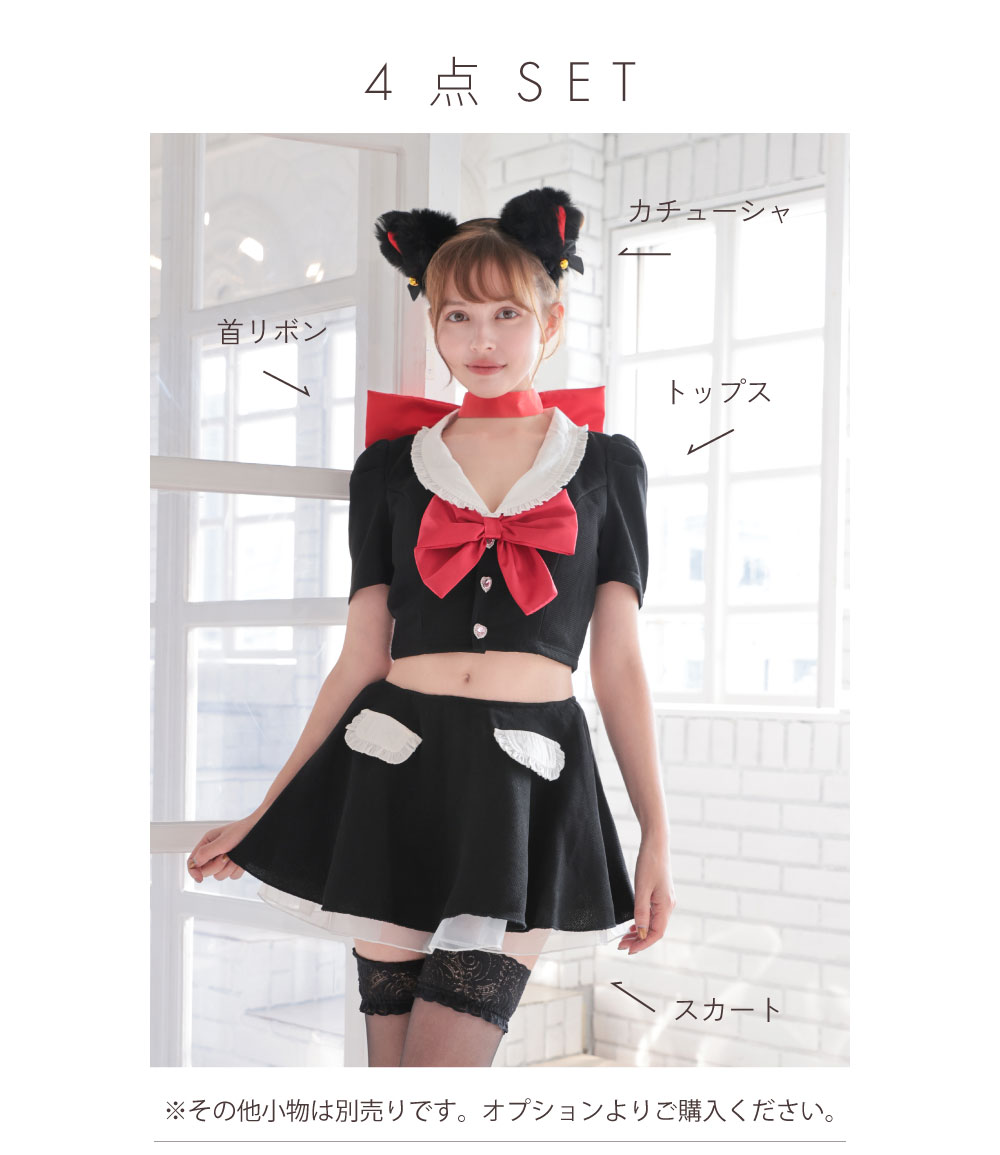 【即日発送*】【コスプレ SALE 54%OFF】 【4点セット】80' kitten.キトゥン ブラック×レッド vcsct-23971-1
