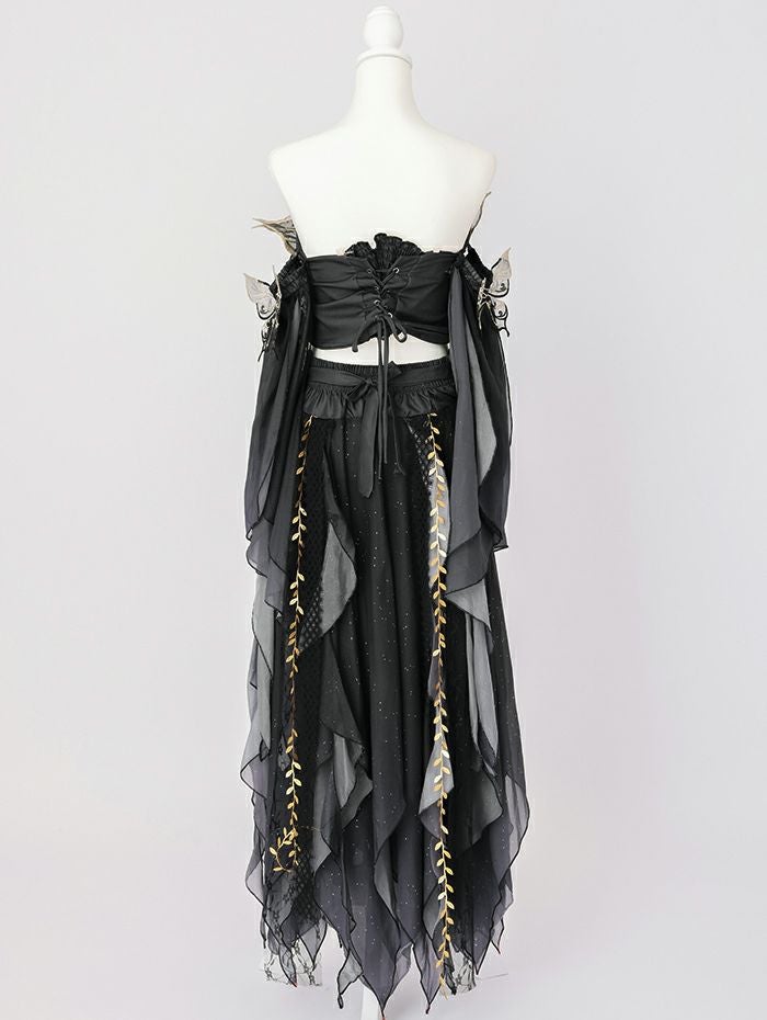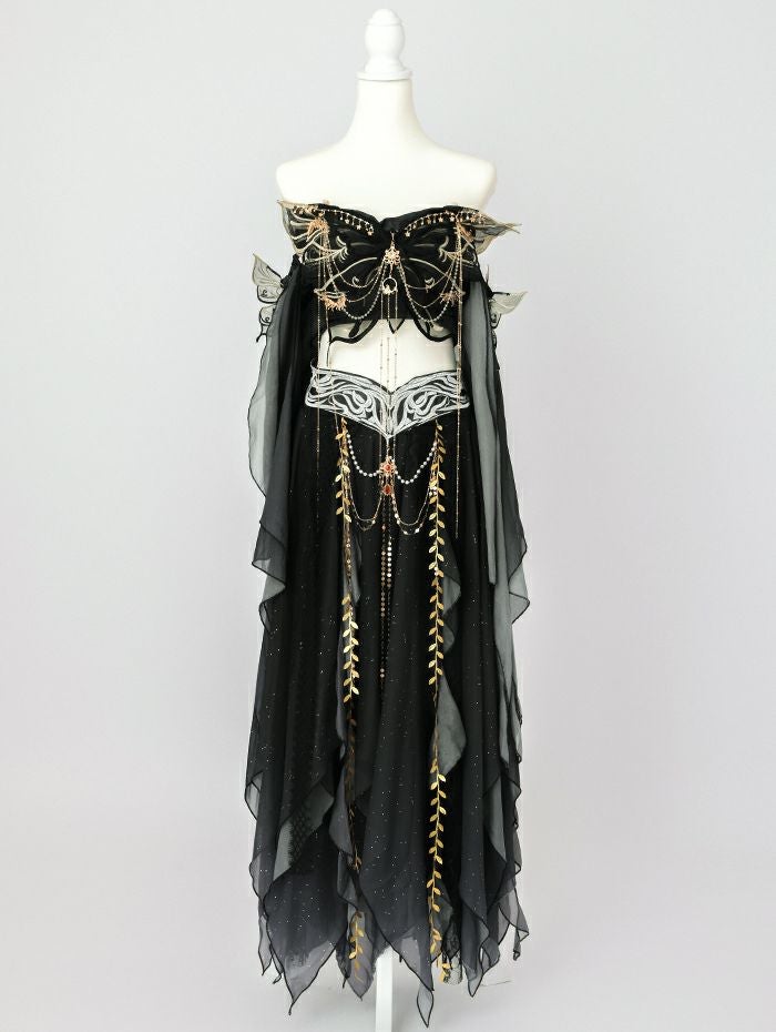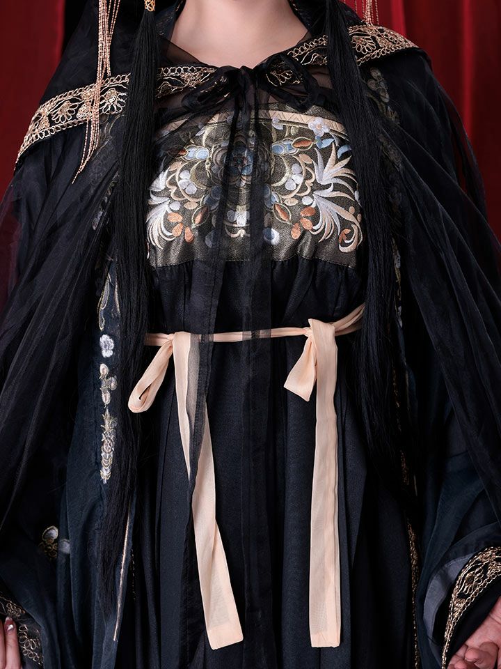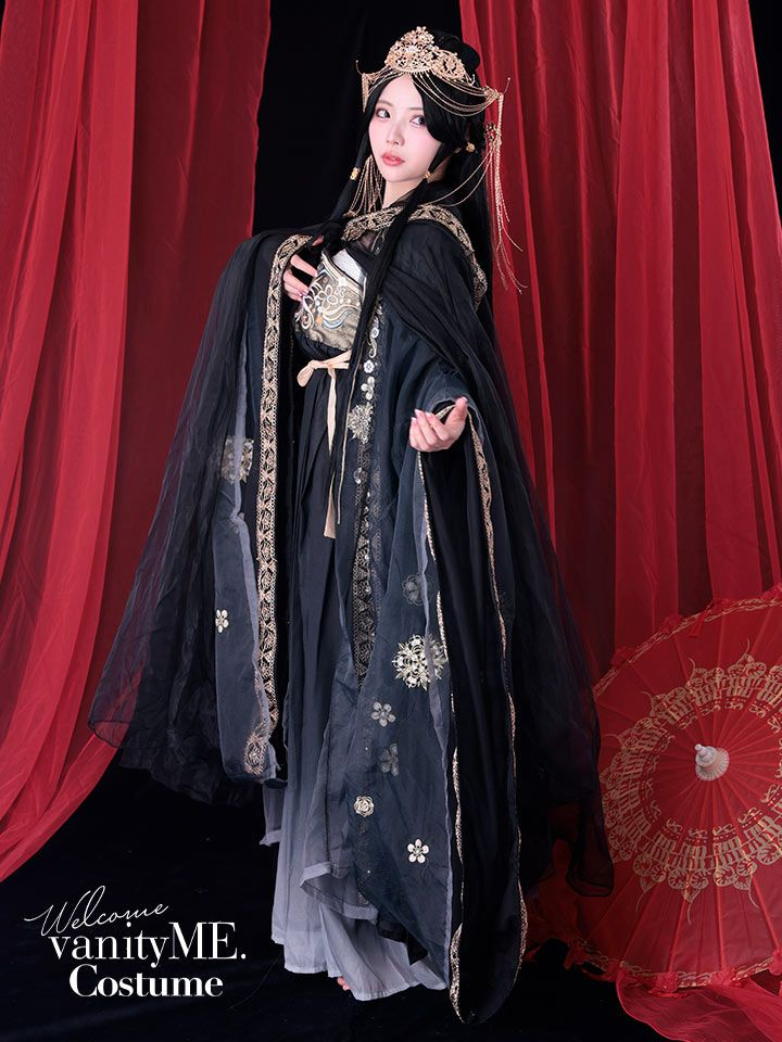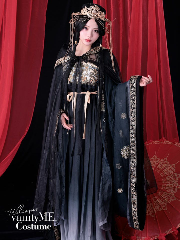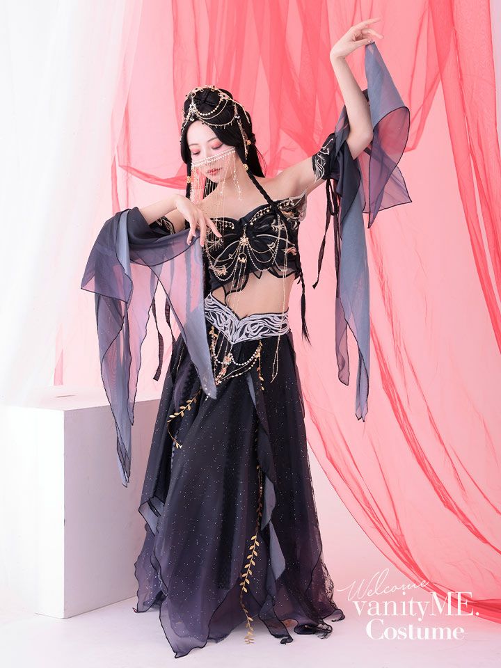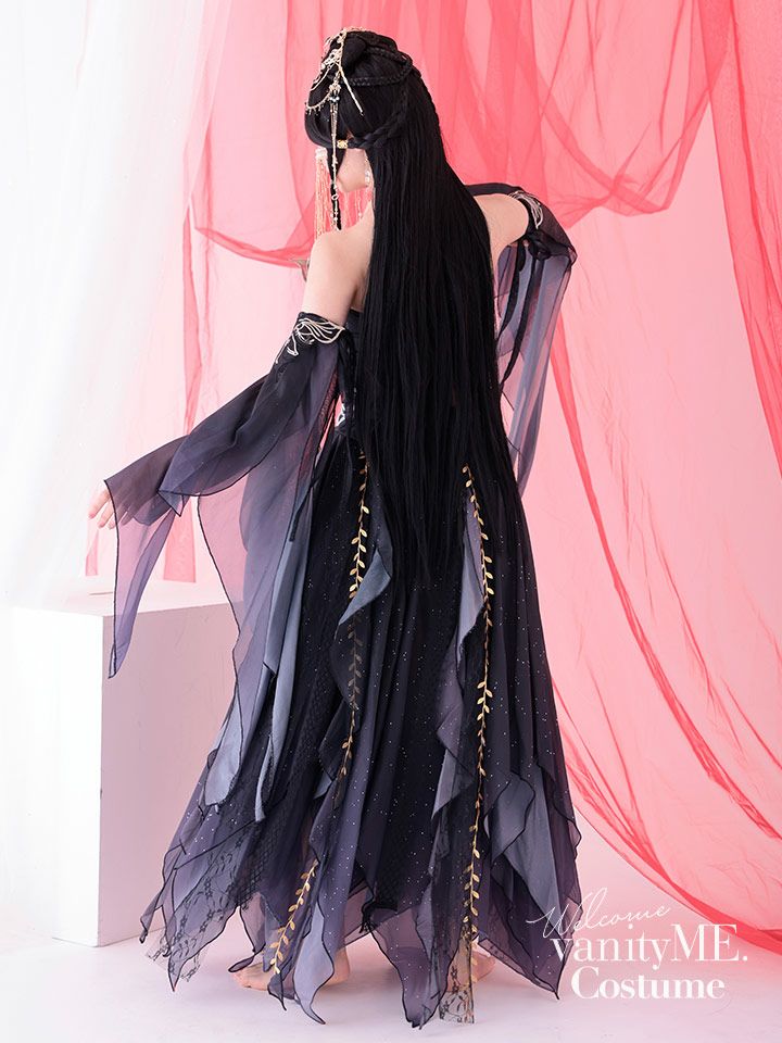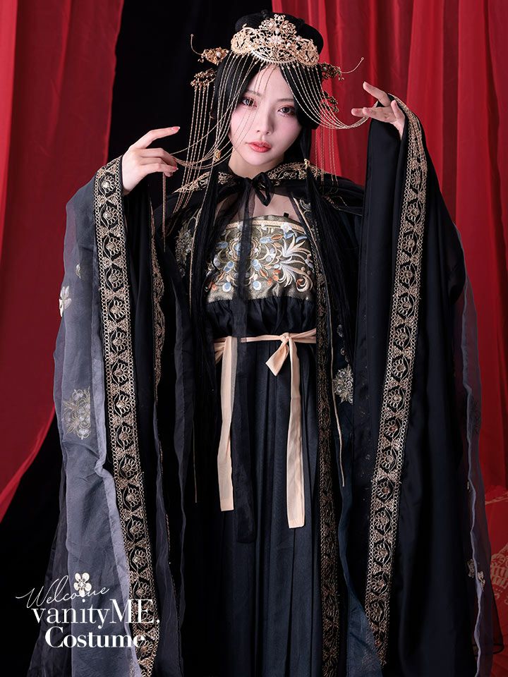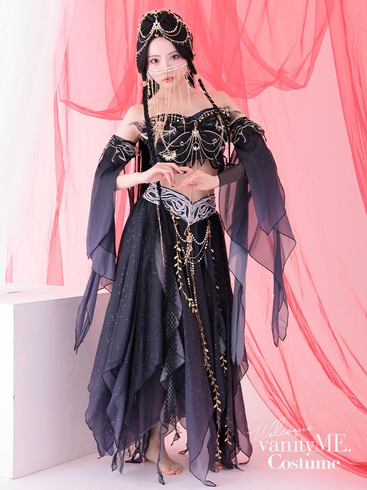 【即日発送*】 【5点セット】九天玄女|天女風 中国漢服コスプレ アラビアンテイスト衣装 ブラック vcsot-25041-1