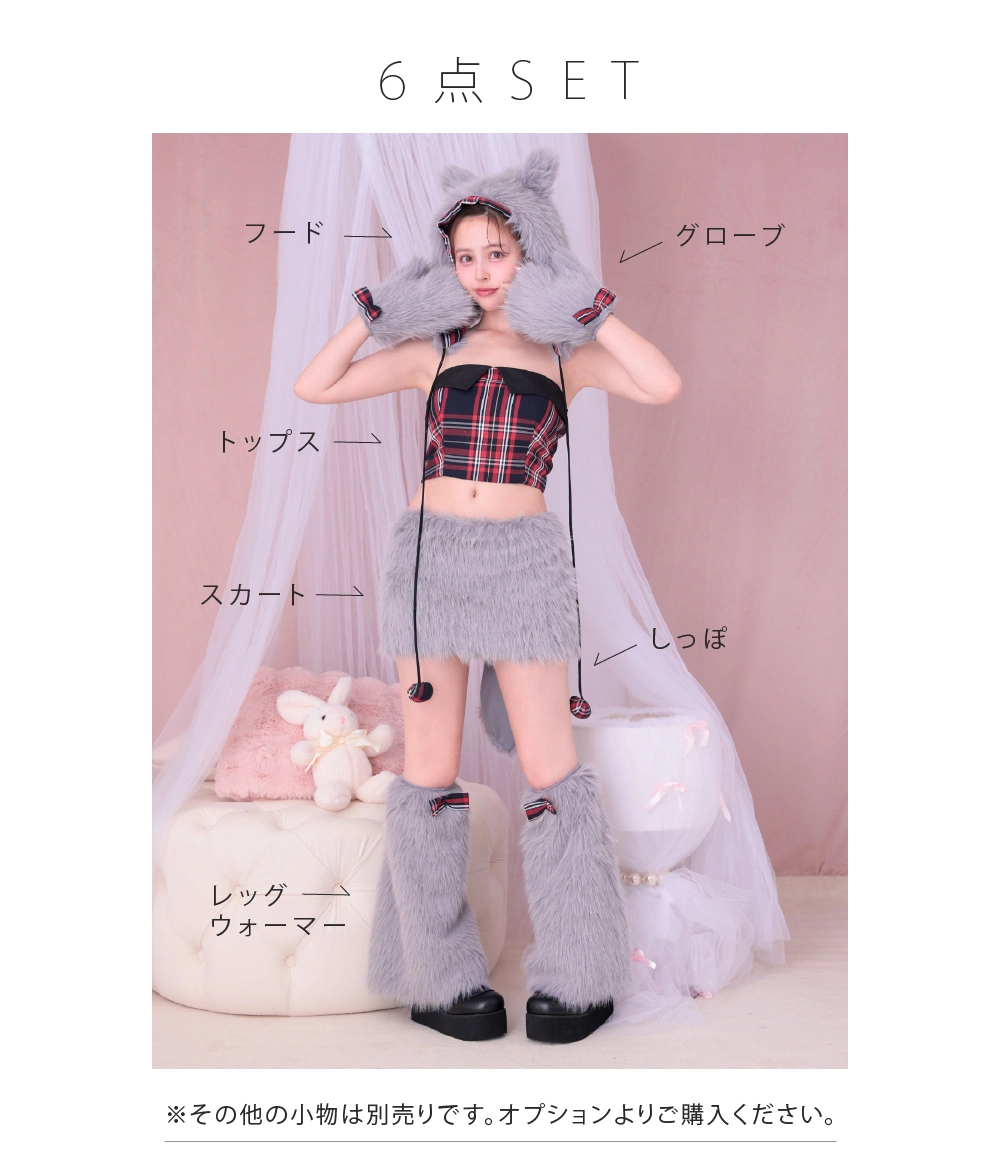 【即日発送*】 【6点セット】Fluffy Tartan Wolf フラッフィー タータン ウルフ グレー vcsot-23988