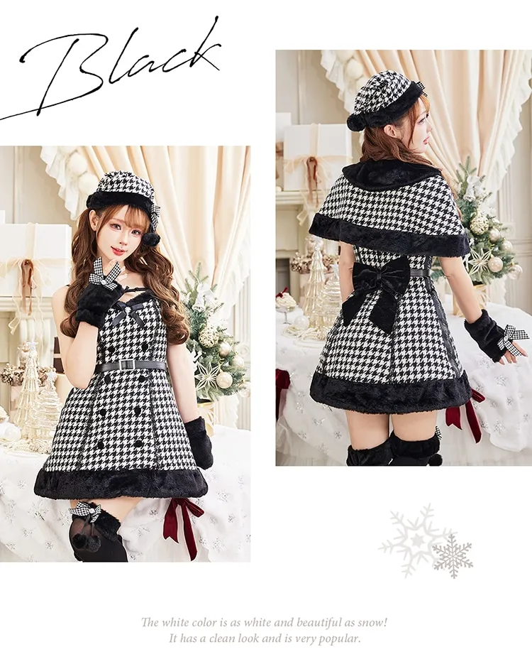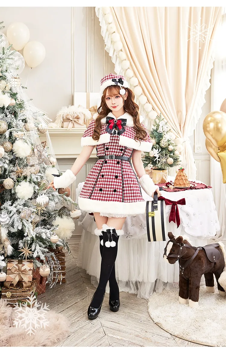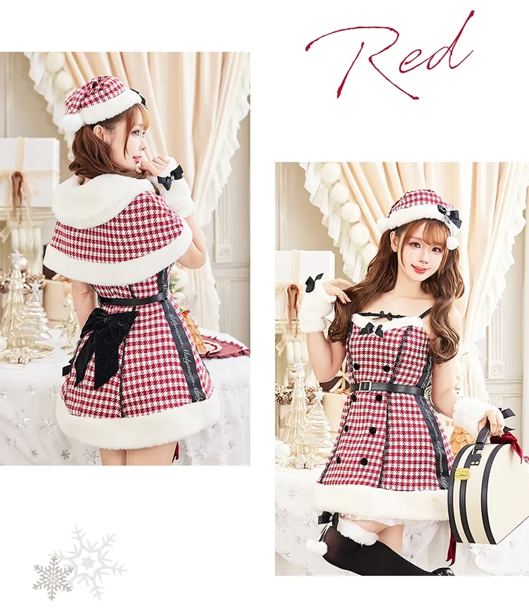 ワンピース・ケープ・サンタ帽・フロントリボン・バックリボン・ベルト・ニーハイソックス・太もも飾り・アームカバー