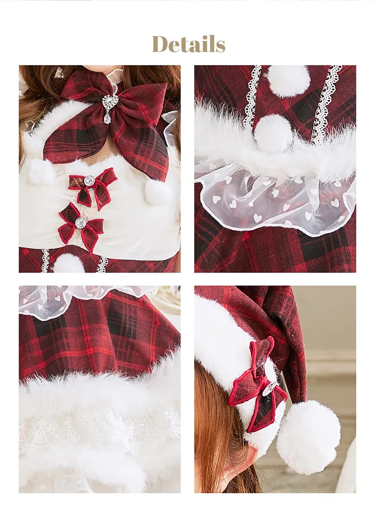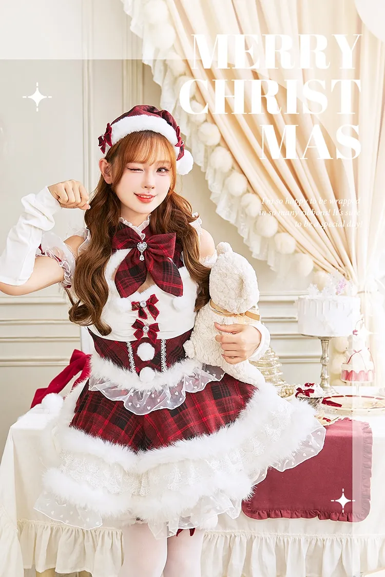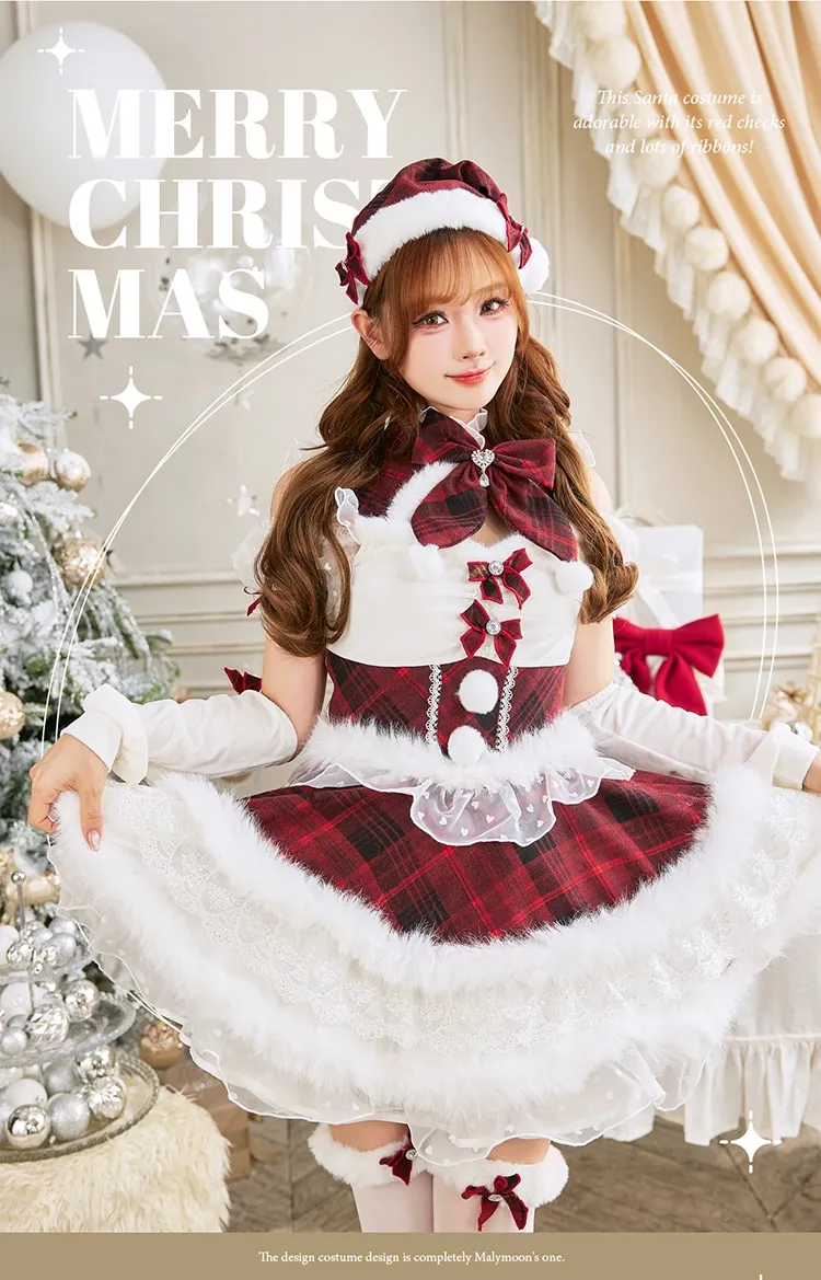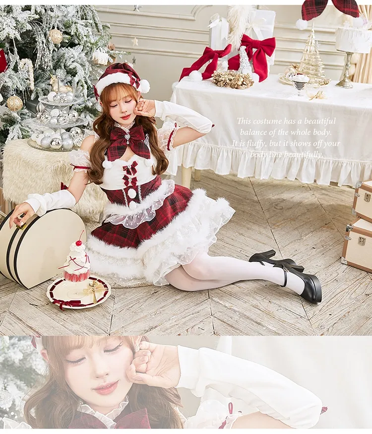 首元の大きなリボンがキュートなチェックサンタコスチューム6点セット♡