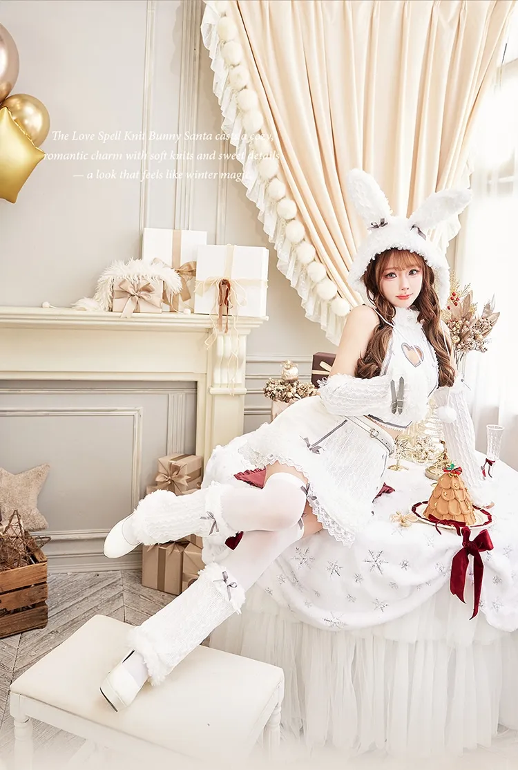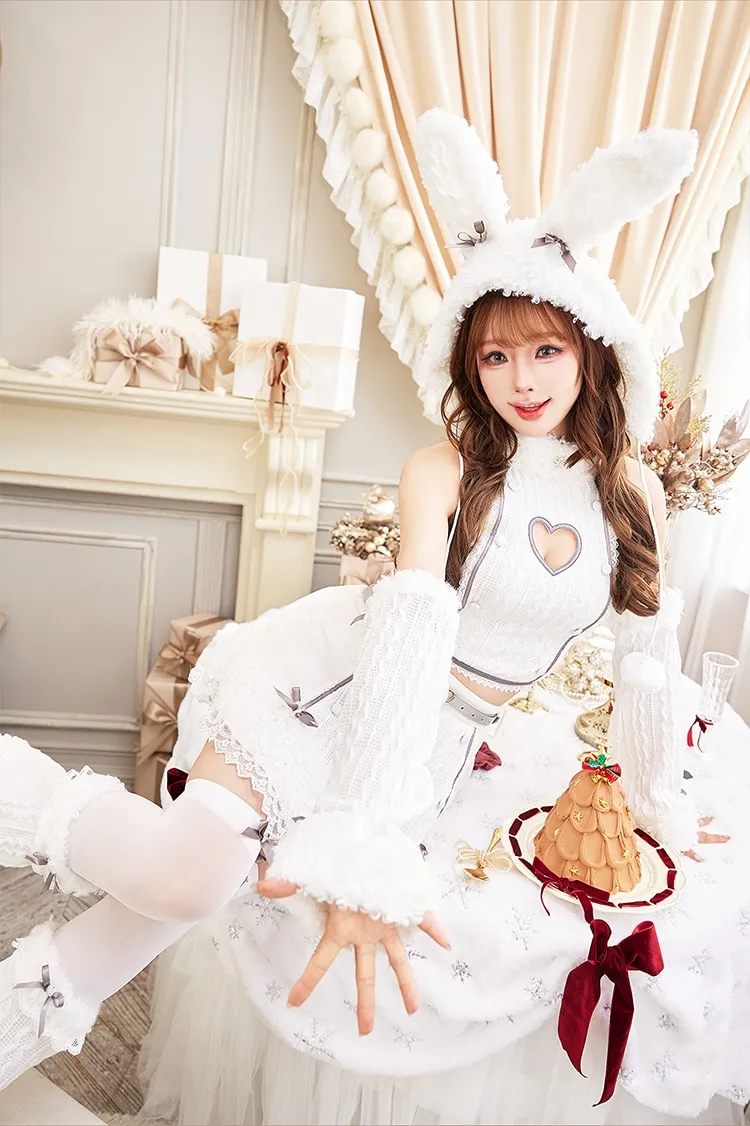 もこもこバニーフードがキュートなサンタコスチューム7点セット♡