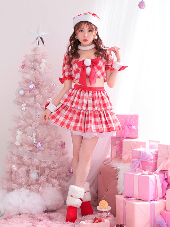 5. 【サンタセール特別価格】【5点セット】赤チェック リボンサンタ [みゆちゃん着用] vcsst-10230-my