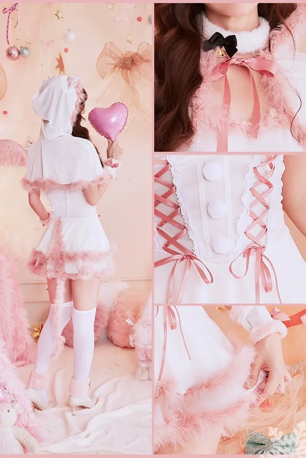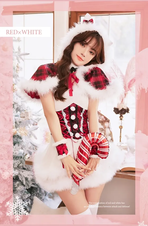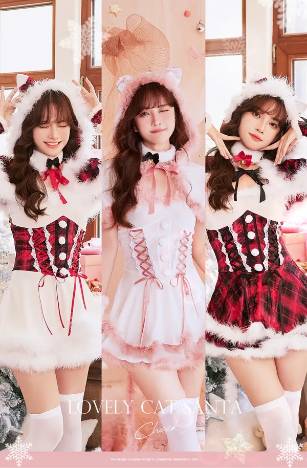 5. 【7点セット】Malymoon マリームーン ファーキャットサンタ [ホワイト・レッド] ml9763
