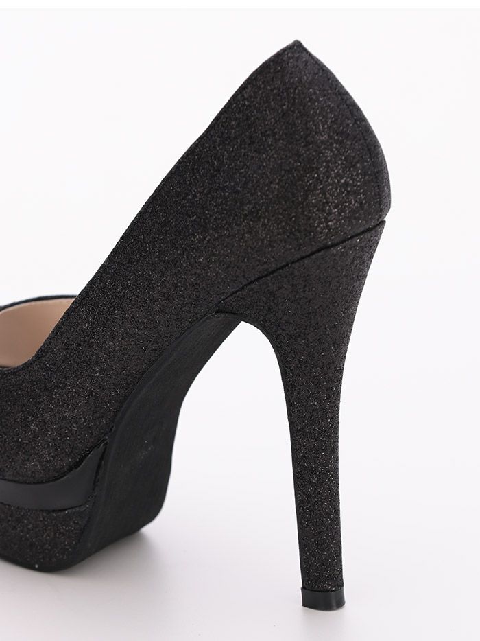 【即日発送】 vanityME.オリジナル グリッターラメ オープントゥ パンプス ブラック・シルバー vsh-s-005