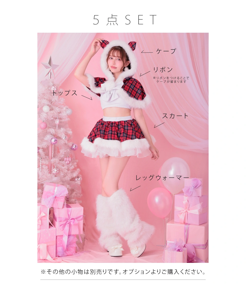 ケープ、トップス、スカート、リボン、レッグウォーマー