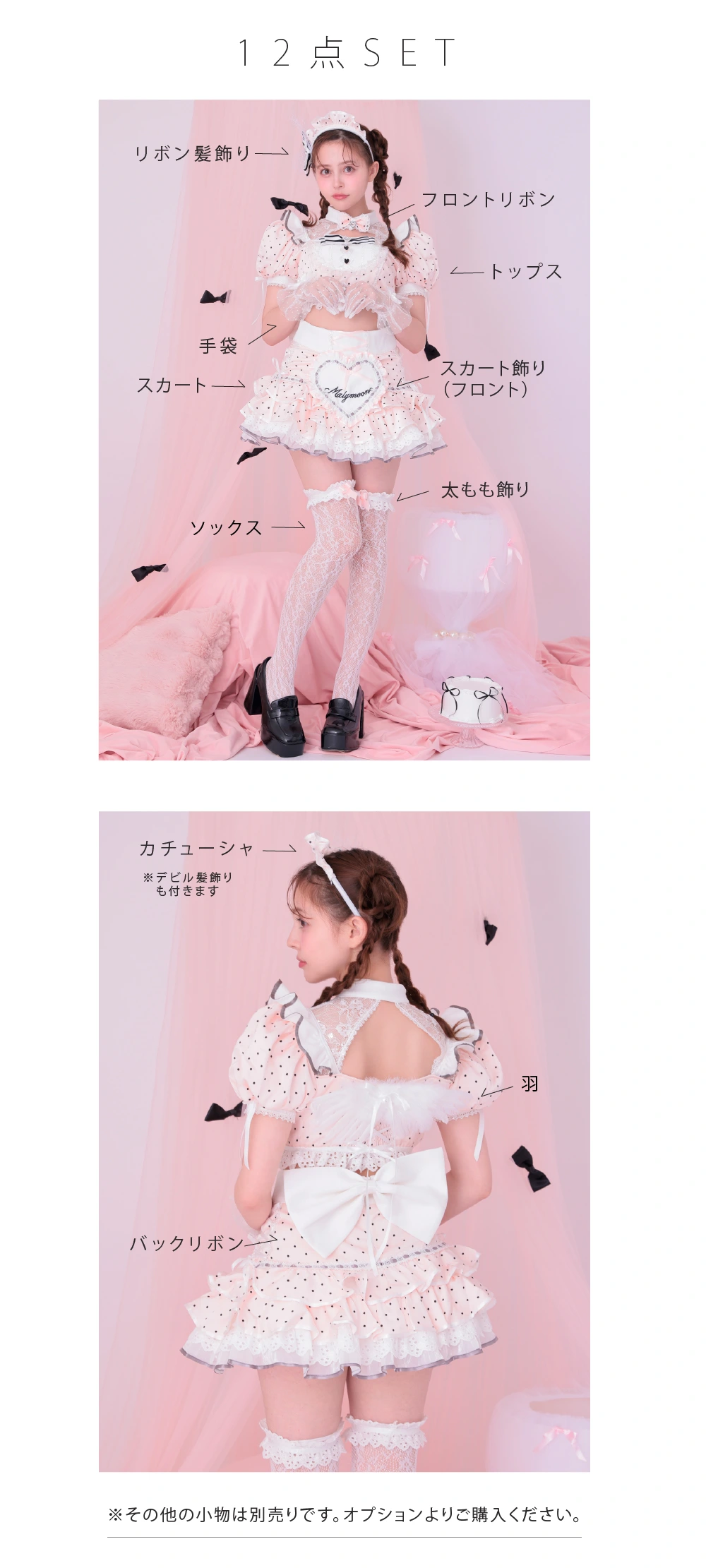 【12点セット】vanityME. × Malymoon ベイビーフリルドットメイド [ホワイト×ピンク] mlcs25040-2