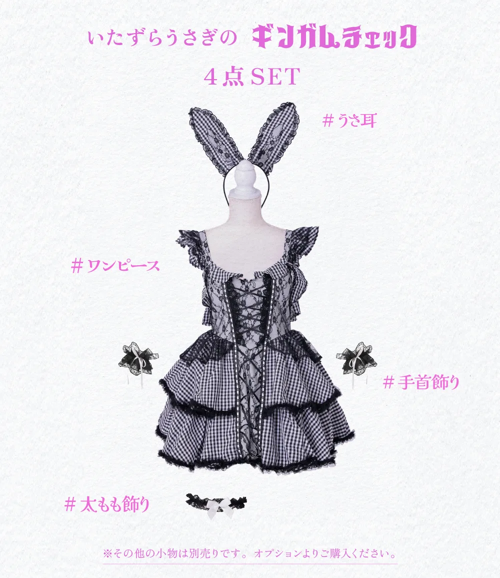 【即日発送*】 【4点セット】vanityME. × MIYANISHIYAMA いたずらうさぎのギンガムチェックドレス ブラック[ナナちゃん着用] vcsbn-250219-2-na