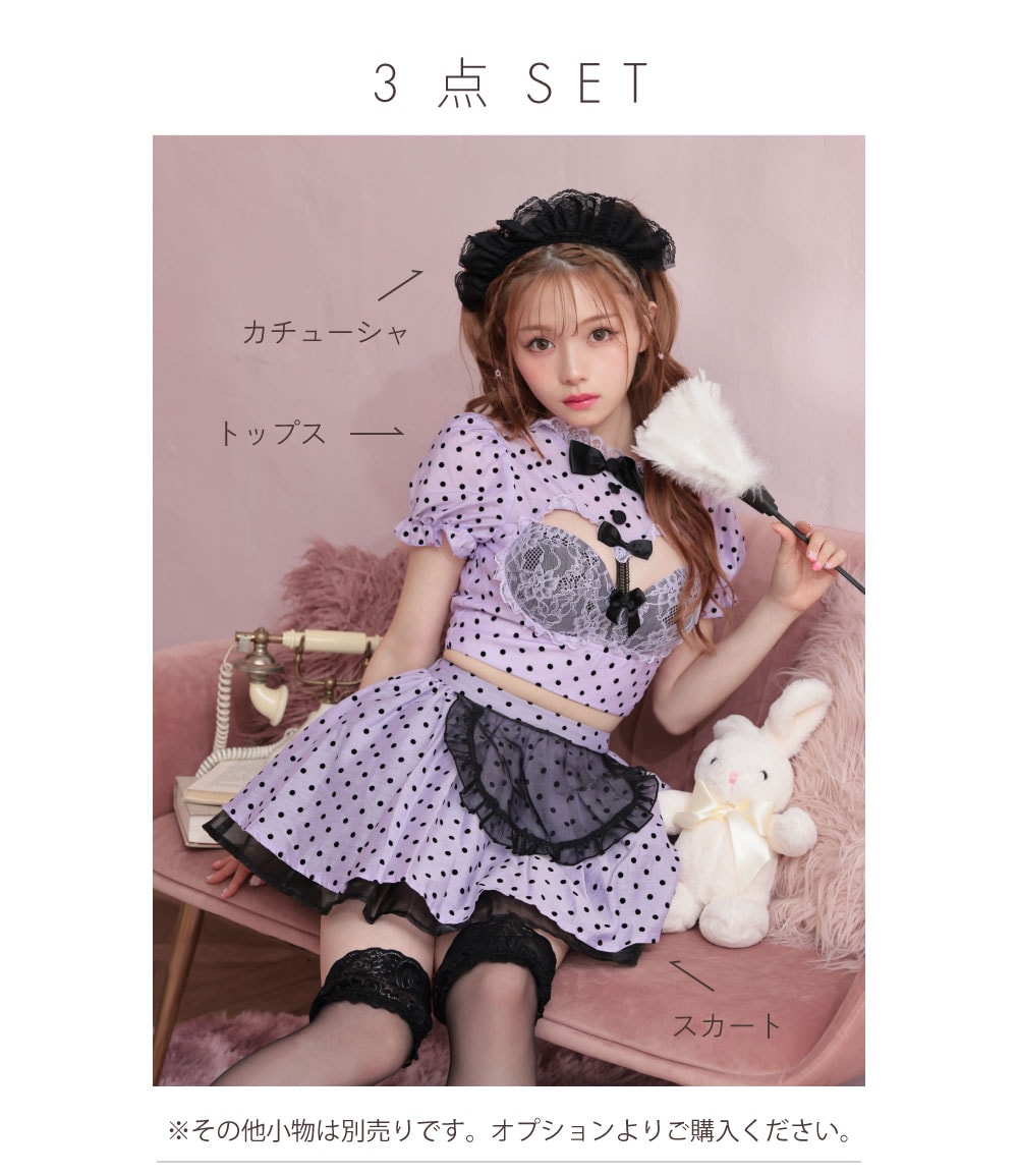【3点セット】POLKA DOTS Maid. パープル vcsmd-240571-2b