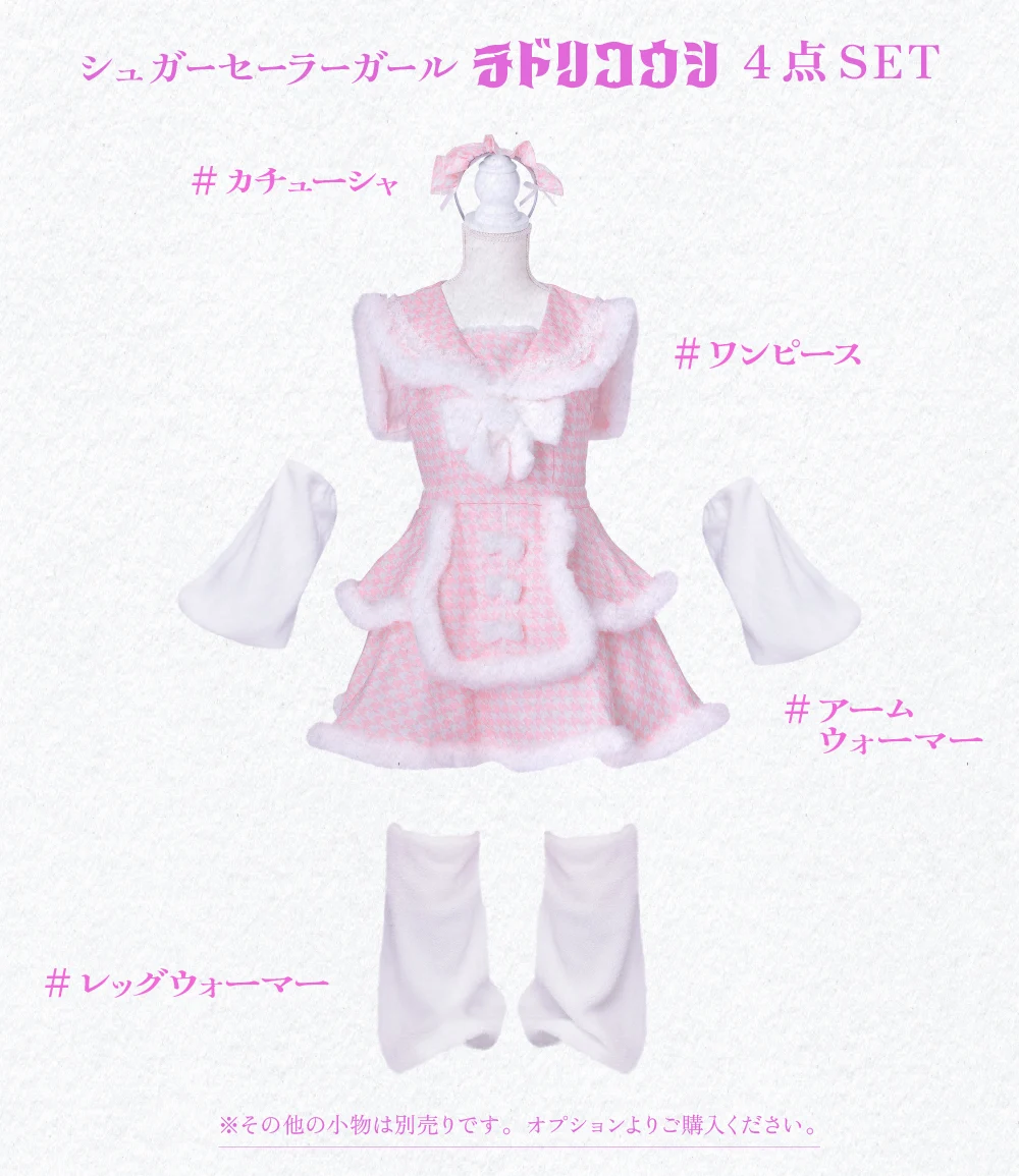 ピンクxホワイトの千鳥柄がガーリーさ満点のセーラーコスチュームが登場。