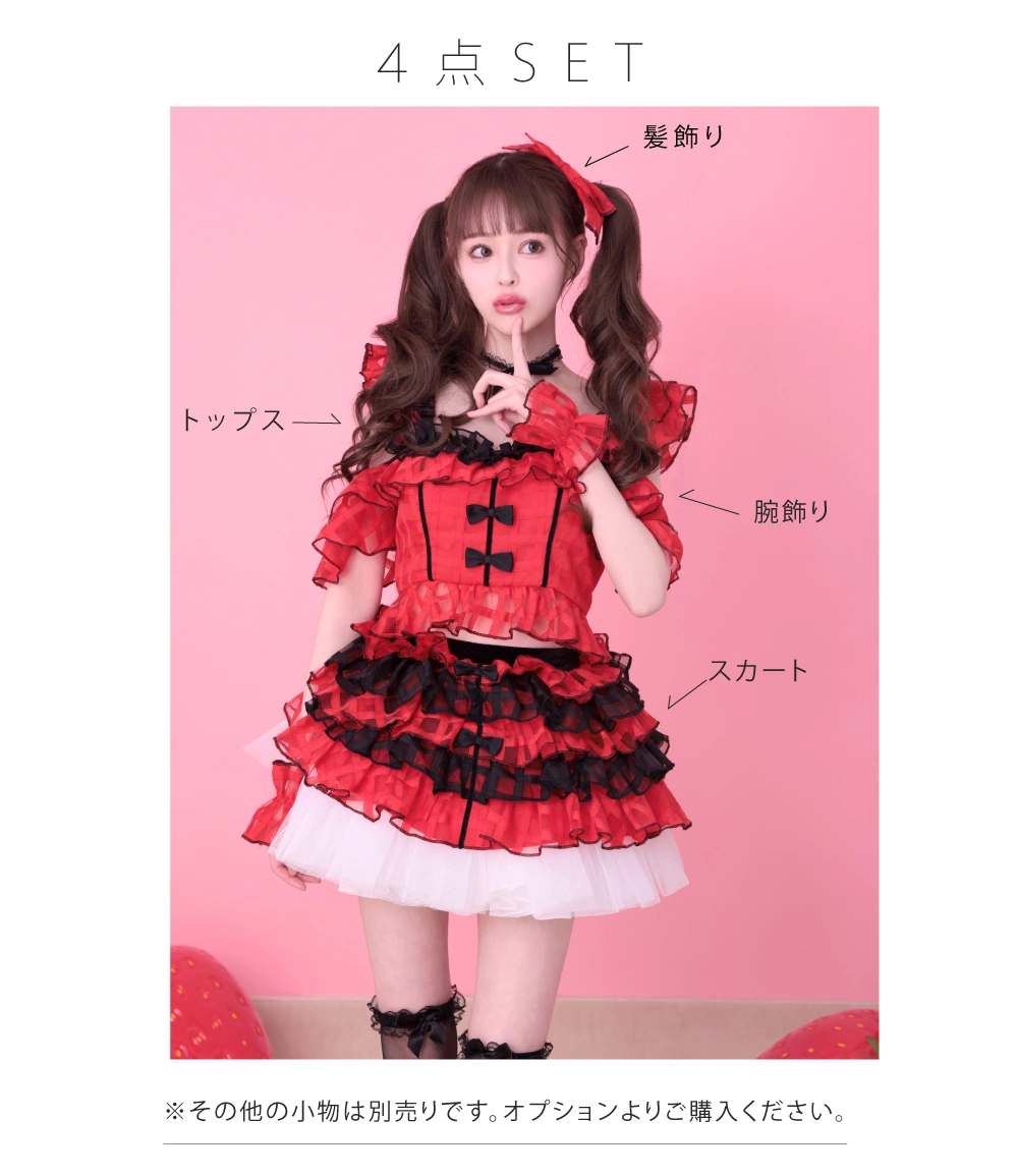 トップス、スカート、腕飾り、髪飾り