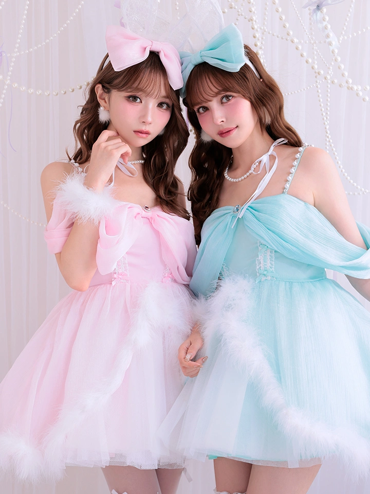ファーのアクセントがミントカラーの透明感を引き立てます。
