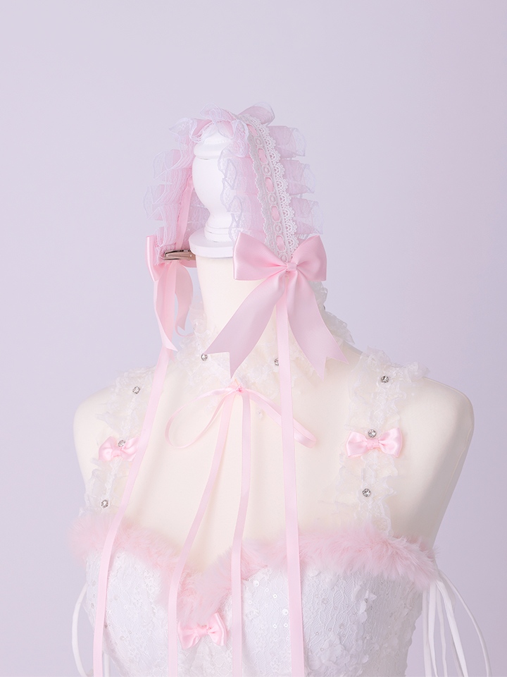頭にはリボン付きレースヘッドアクセが付き、完璧な天使ルックを完成させます。