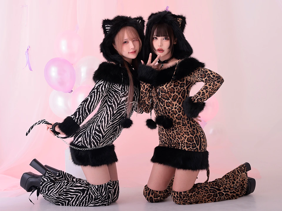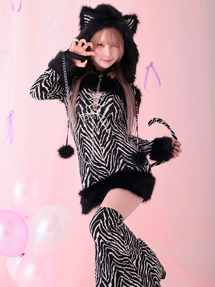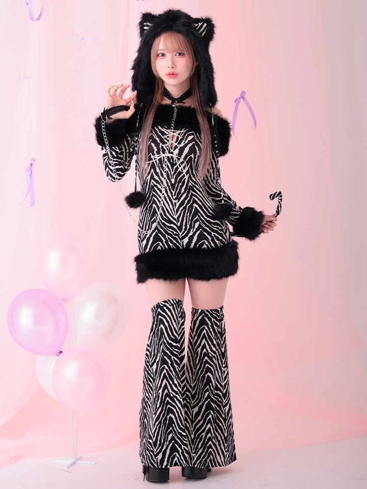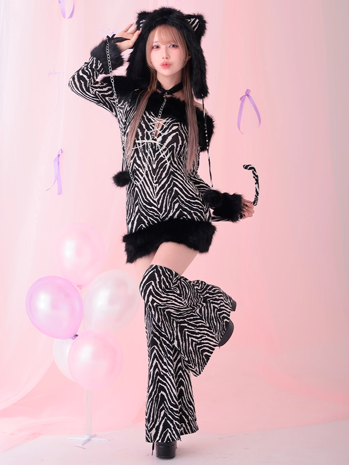 モノトーンのゼブラ柄を全身にまとった、スタイリッシュで存在感抜群のアニマルガールスタイル。