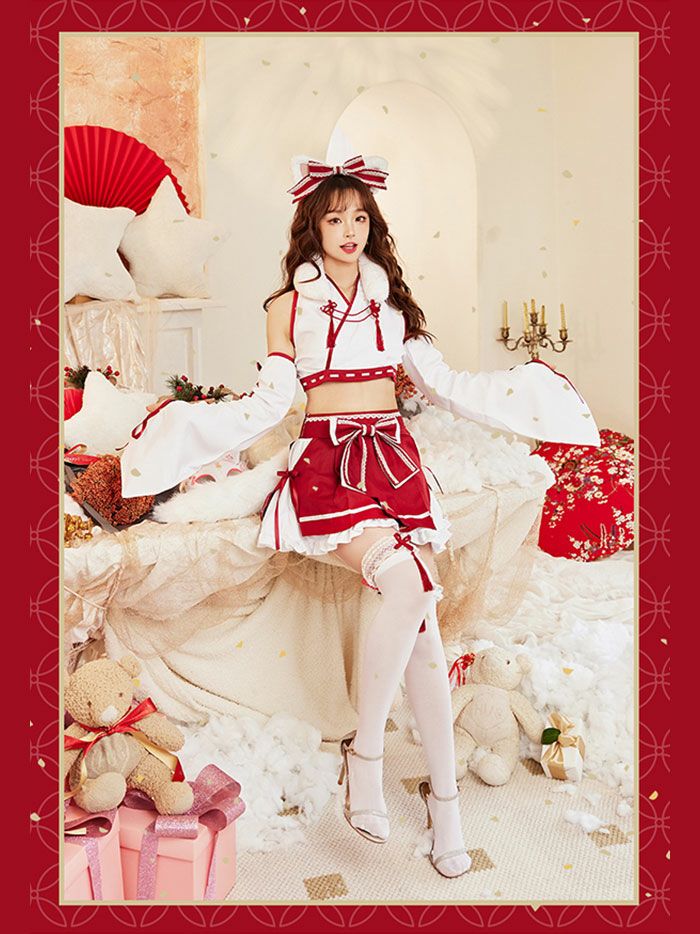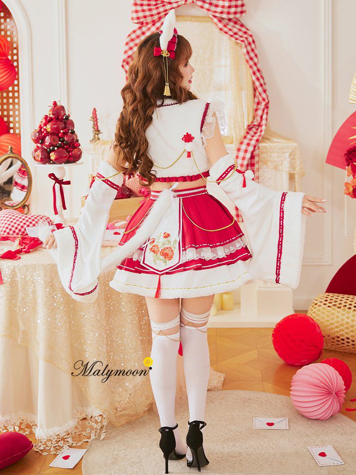 【即日発送*】 【9点セット】Malymoon マリームーン ロングスリット巫女バニー[ホワイト/ブラック] mlcs25176
