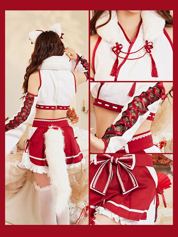 【即日発送*】 【3点セット】狐巫女/刺繍柄・お面付き vcsot-200616