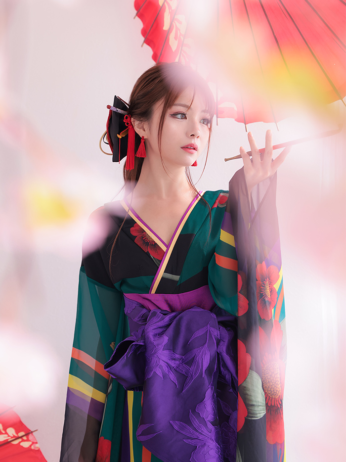 5. 花魁 コスチューム 遊女 花魁 緑 和柄 本格和装 着物 花魁ドレス vcsot-170331-10