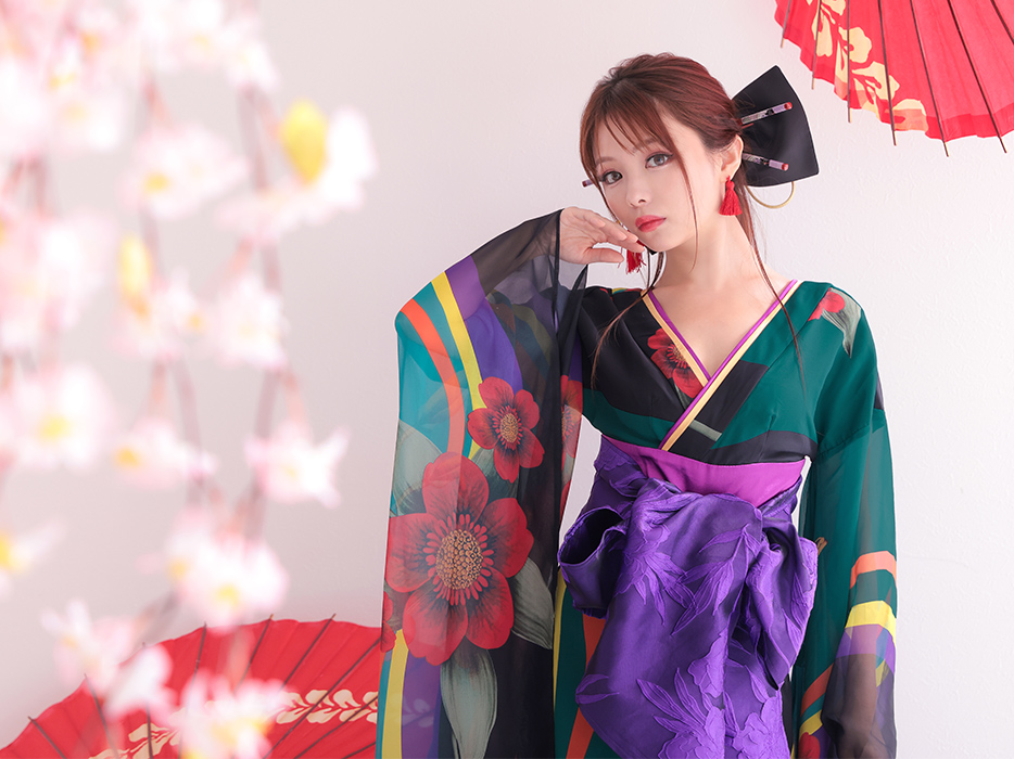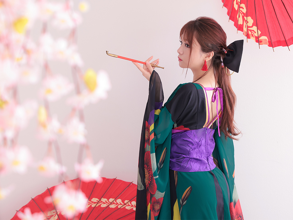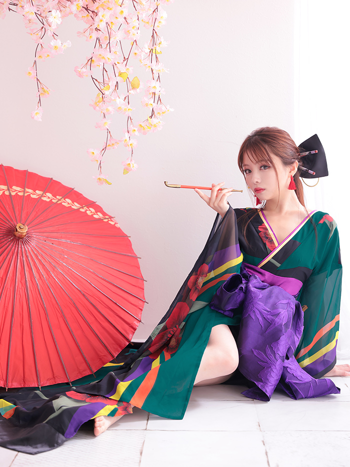 く花魁ドレス和柄緑