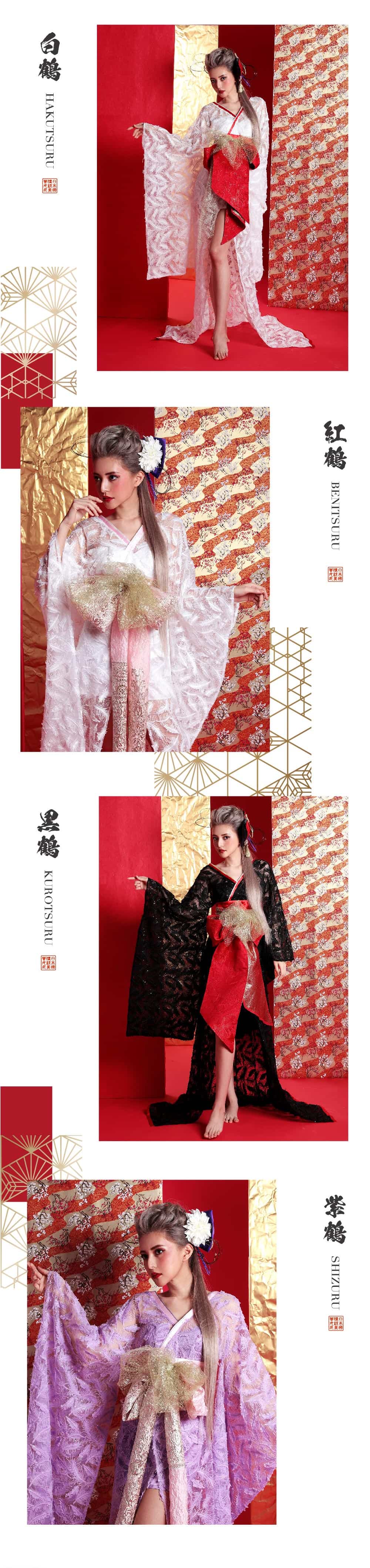 帯は前にもってきていただき、結んでいただくと簡単に花魁姿にすることが可能です。