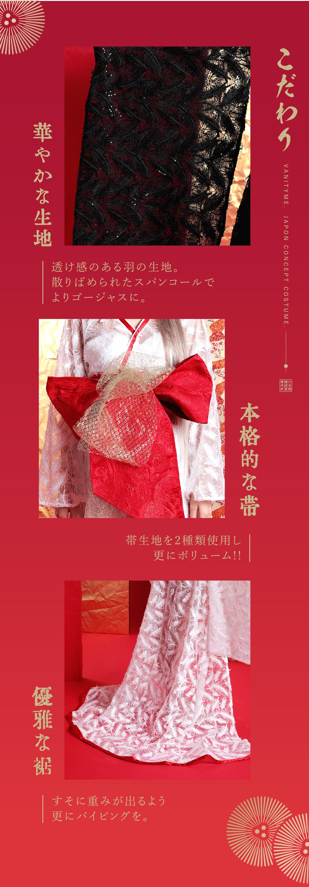 3. 花魁コスチューム フェザー花魁 黒×赤 vcsot-190305-2