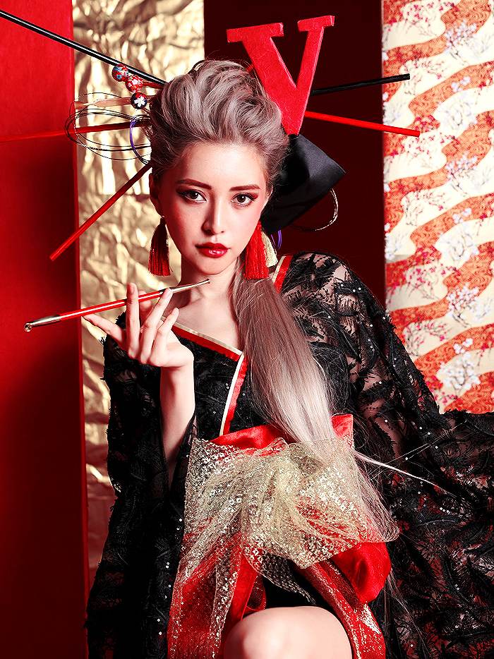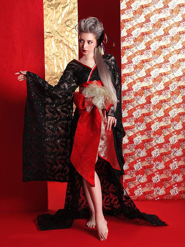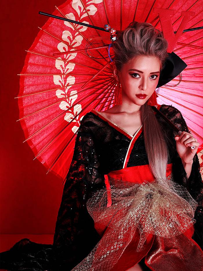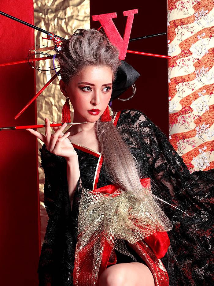 5. 花魁コスチューム フェザー花魁 黒×赤 vcsot-190305-2