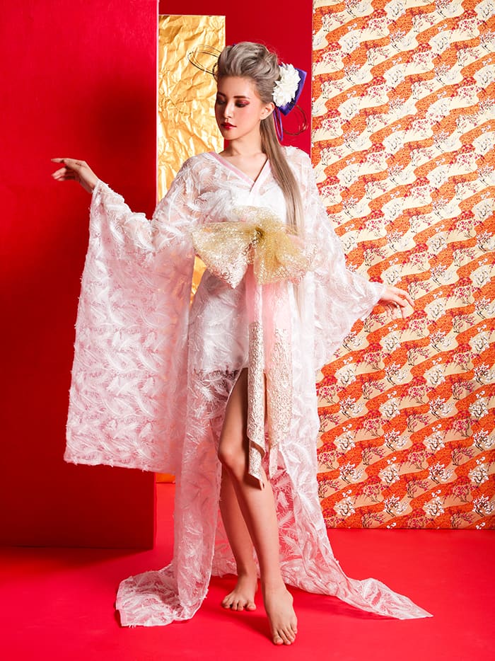 4. 花魁コスチューム フェザー花魁 白×ピンク vcsot-190305-3-ma