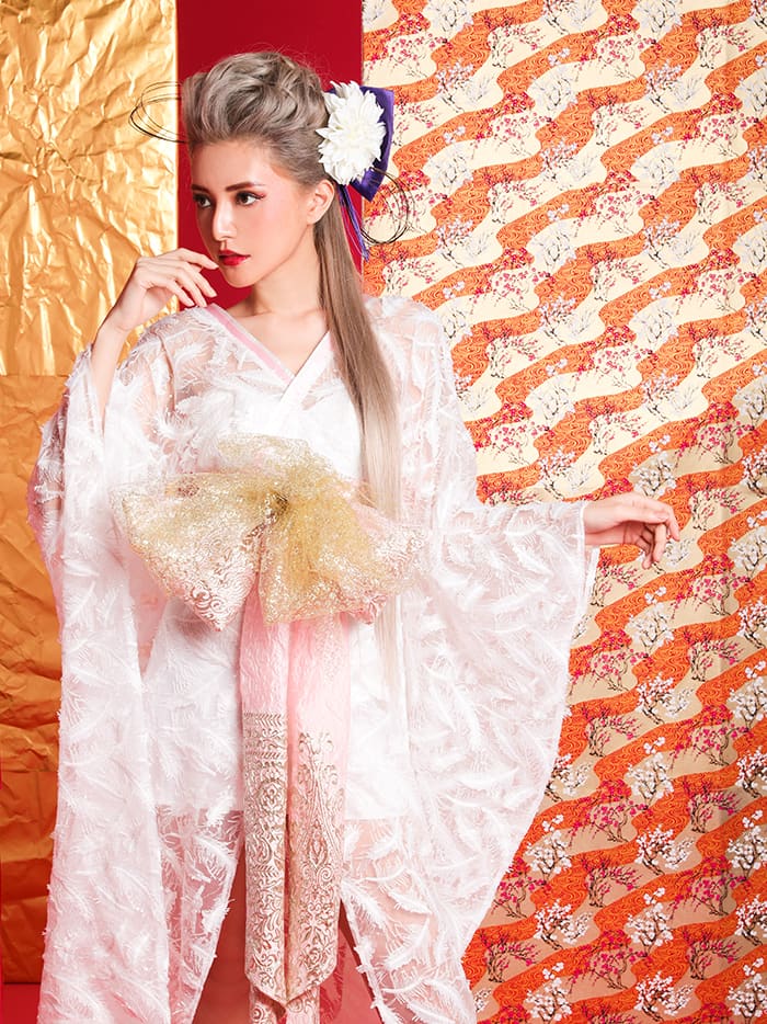 3. 花魁コスチューム フェザー花魁 白×ピンク vcsot-190305-3-ma