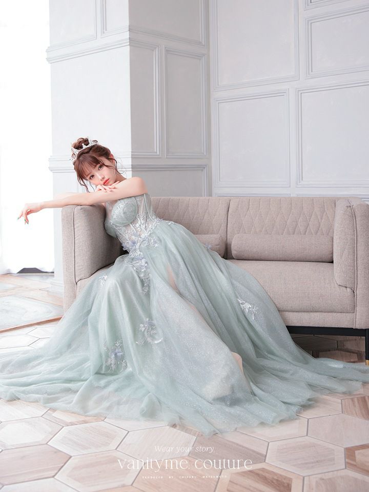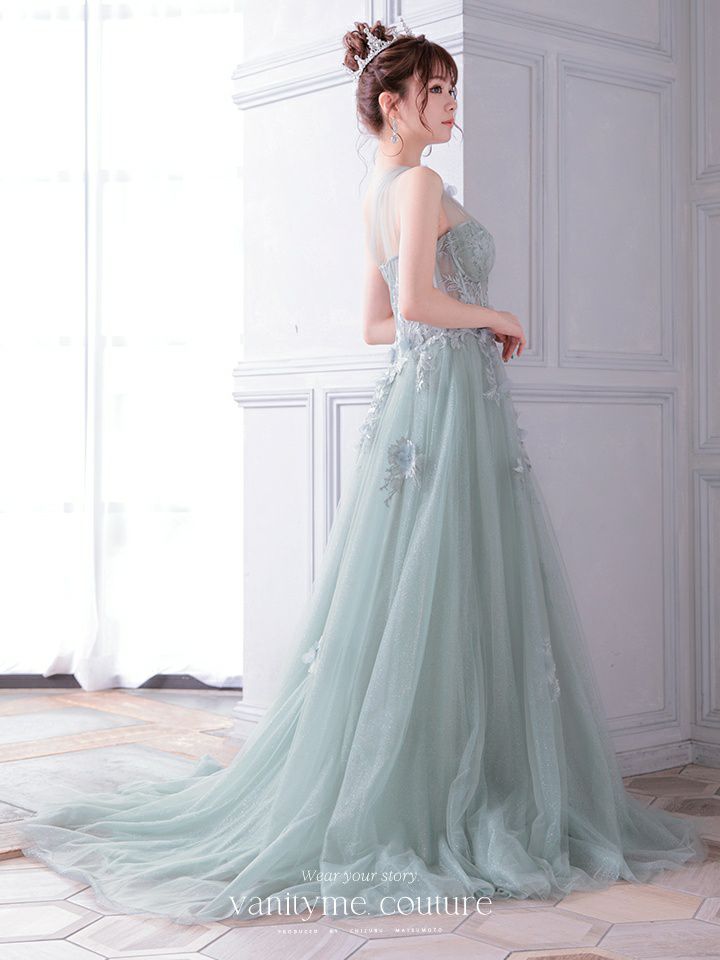 3. vanityME.couture. バニティミークチュール バースデードレス ワンショルダー フラワー ロングドレス グリーン vctr-la-2382-2