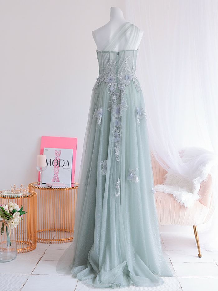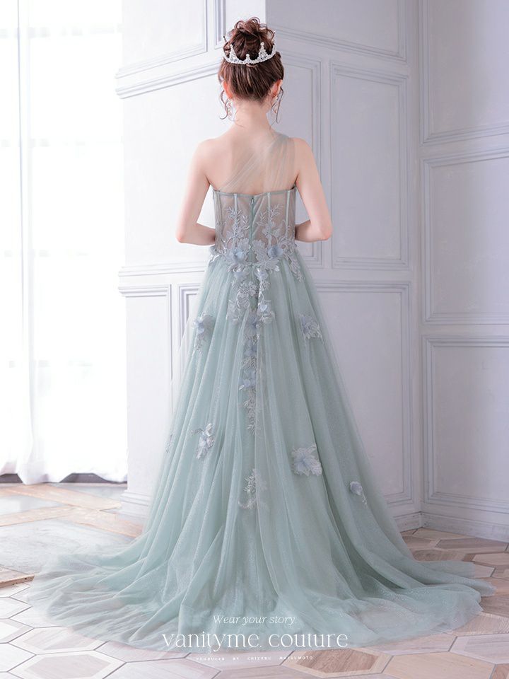 vanityME.couture. バニティミークチュール バースデードレス ワンショルダー フラワー ロングドレス グリーン vctr-la-2382-2