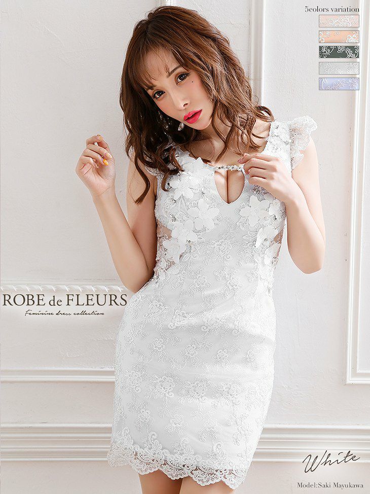 3. ROBE de FLEURS 立体フラワーレース×サイドレース切替タイトミニドレス fm1852-1