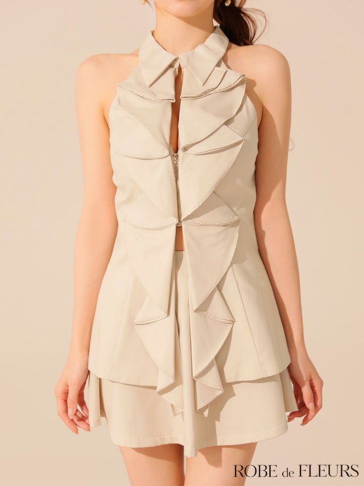 ROBE de FLEURS ローブドフルール フロントラッフルホルターミニキャバドレス fm3468
