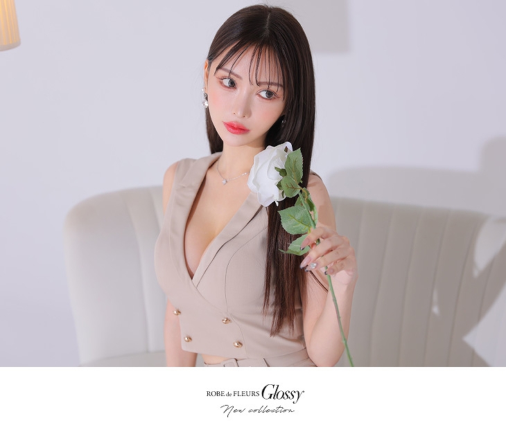 胸元がしっかり開いたセクシーなセットアップドレス。