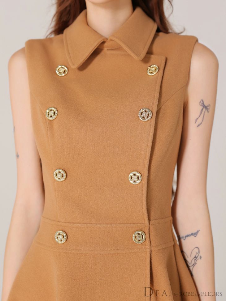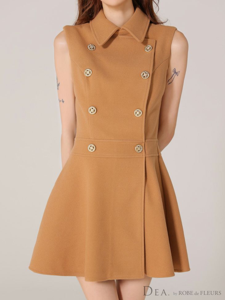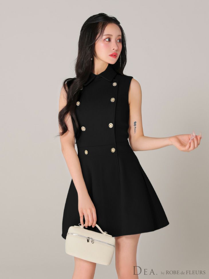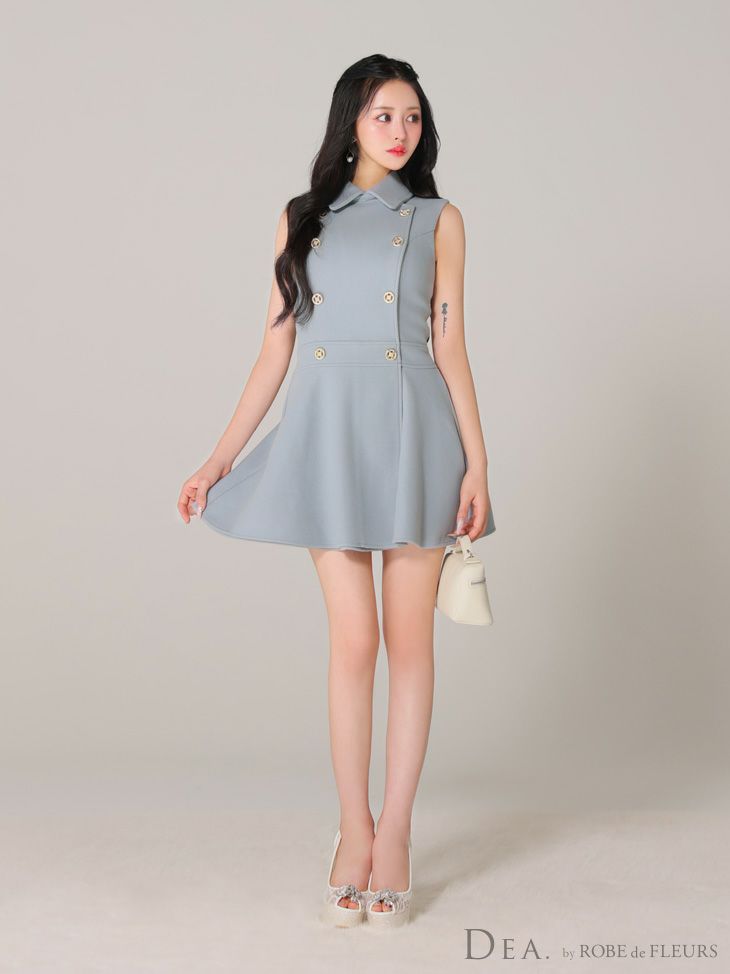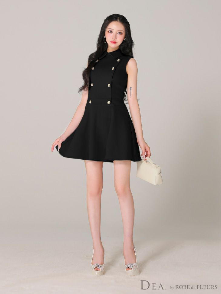 DEA. ディア バイ ローブドフルール 襟付きノースリーブダブルボタンフレアミニキャバドレス de3365-c
