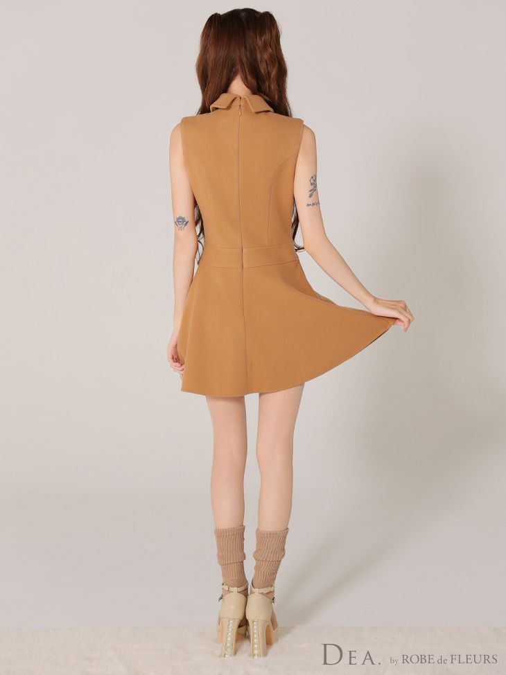 3. DEA. ディア バイ ローブドフルール 襟付きノースリーブダブルボタンフレアミニキャバドレス de3365-c