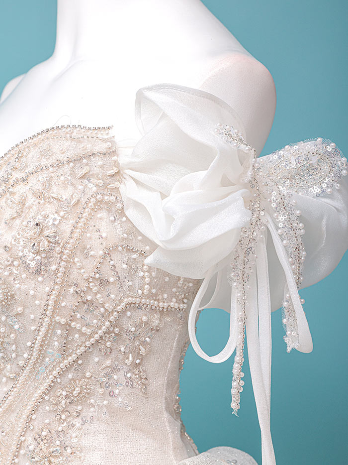 4. vanityME.couture. バニティミークチュール オフショル リボンショルダー ビジュー プリンセス 姫 ウエディングドレス ロングドレス ホワイト vctr-t-24105