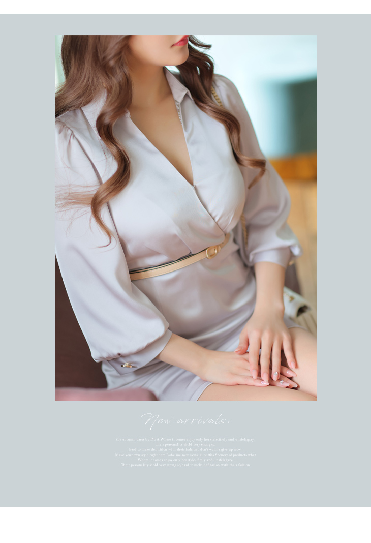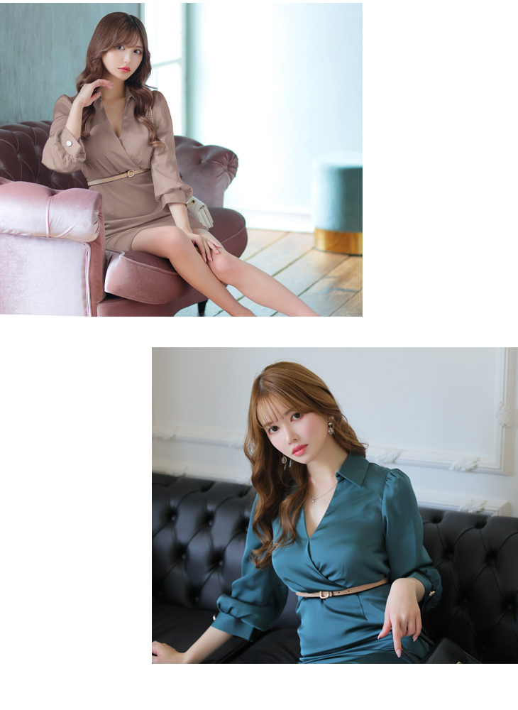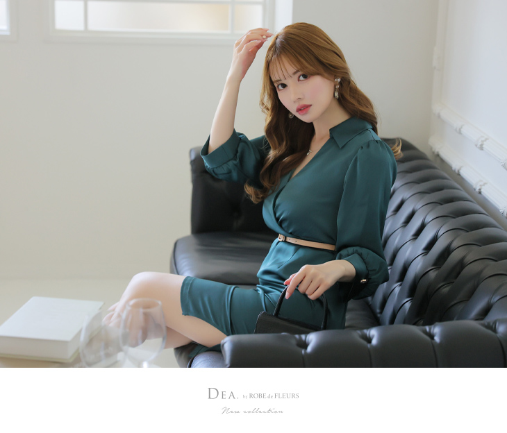 【9月下旬入荷予定】DEA. ベルト付きサテンロングスリーブドレス de2763-c