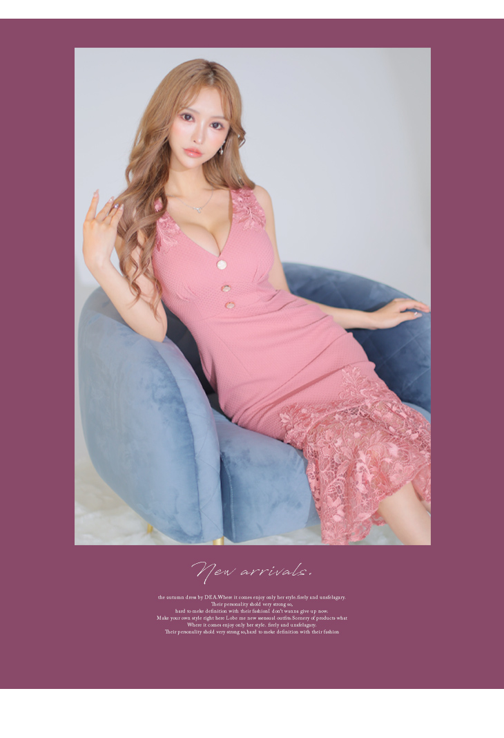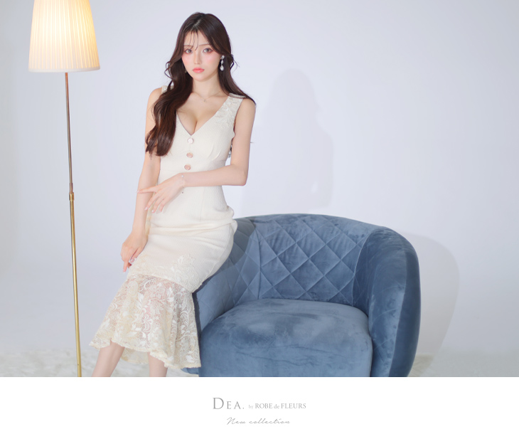 5. DEA. ディア バイ ローブドフルール レース裾マーメイドミディドレス de2773-c