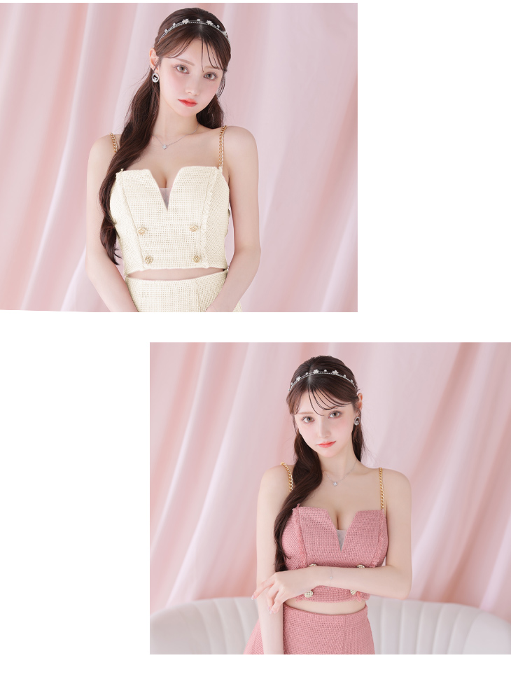 【お取り寄せ商品】 DEA. ディア バイ ローブドフルール ダブルボタンツイードフリンジマーメイドセットアップキャバドレス de2784-c