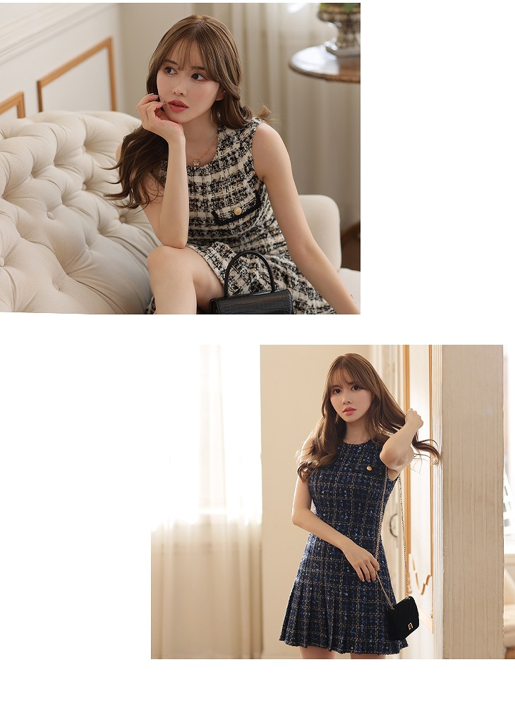 5. DEA. ディア バイ ローブドフルール 【XSサイズあり】ラメツイード×プリーツミニドレス de2940