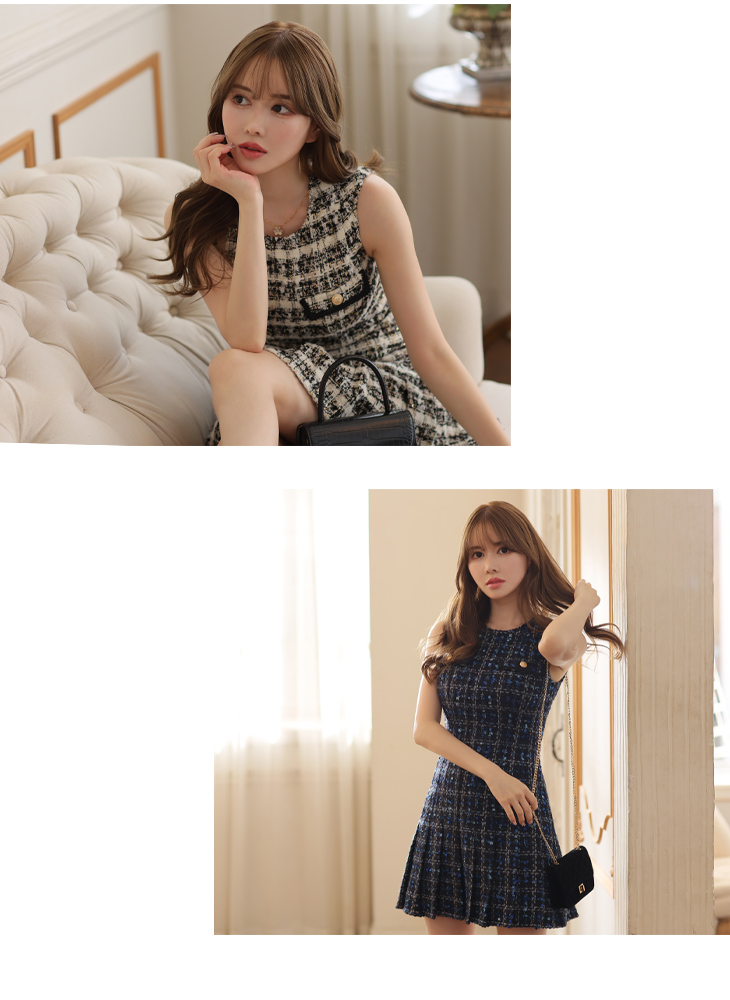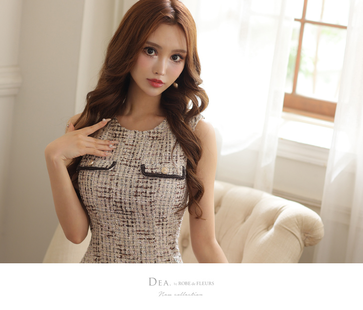 5. 【5月上旬頃入荷予定】DEA. ディア バイ ローブドフルール ラメツイード×プリーツミニドレス de2940-c