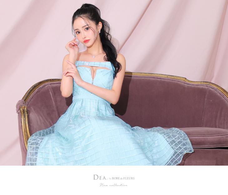 DEA. ディア バイ ローブドフルール チェックオーガンジーバストカットフレアロングキャバドレス de2986-c