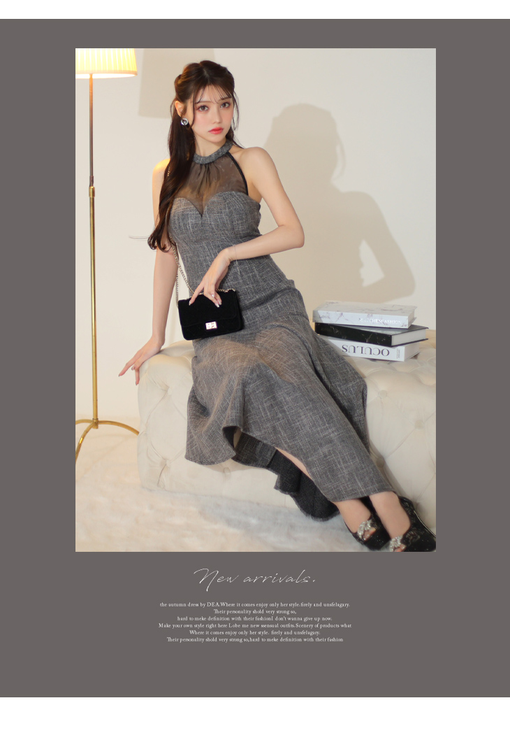 デコルテ部分のオーガンジーが上品セクシーなミディドレス。