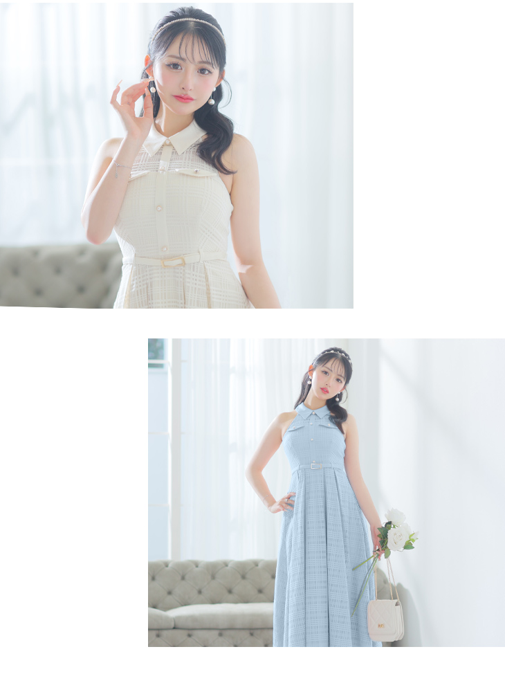 DEA. ディア バイ ローブドフルール 襟付きホルターネックチェックレースロングキャバドレス de3251-c