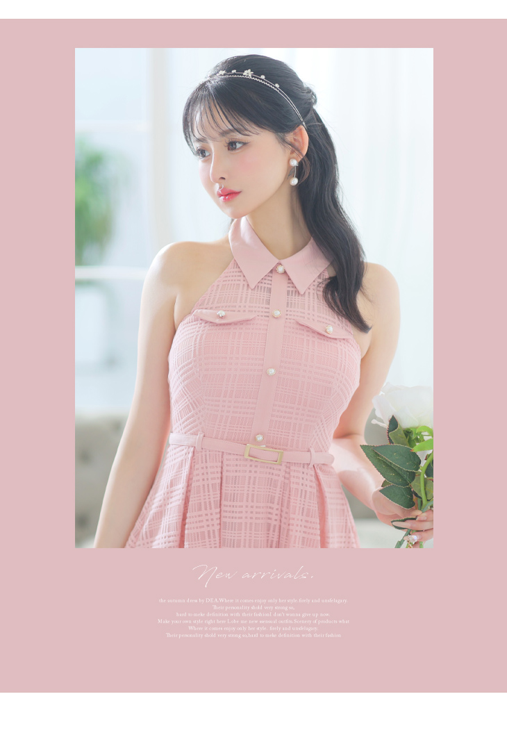 4. DEA. ディア バイ ローブドフルール 襟付きホルターネックチェックレースロングキャバドレス de3251-c