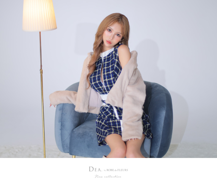 DEA. ディア バイ ローブドフルール フロントジッパー×チェックツイードミニドレス de3315-c