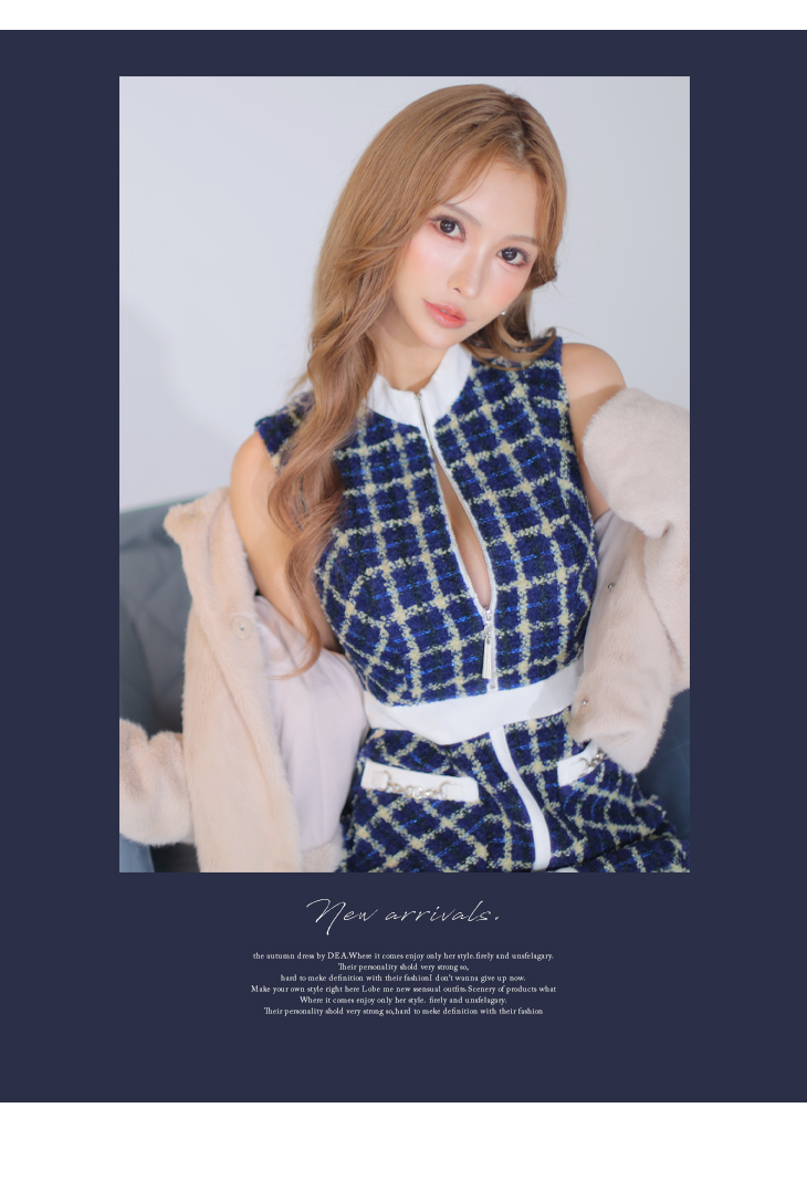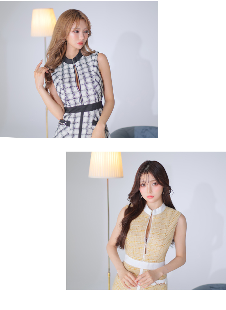 DEA. フロントジッパー×チェックツイードミニドレス de3315-c