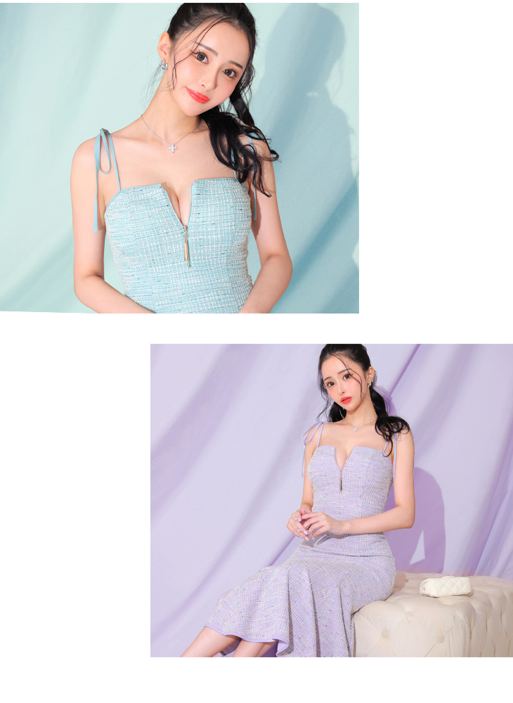DEA. ディア バイ ローブドフルール 肩紐リボン×ニットツイードマーメイドキャバドレス de3328-c