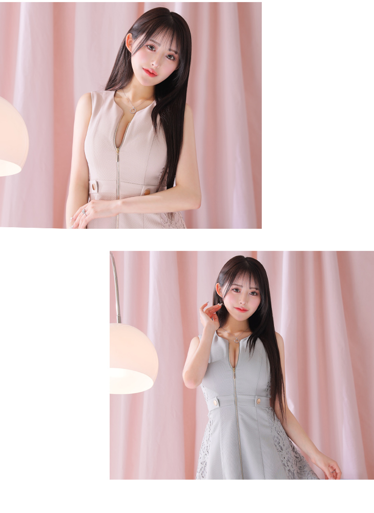 4. DEA. ディア バイ ローブドフルール サイドレースノースリーブフロントジップフレアキャバドレス de3329-c