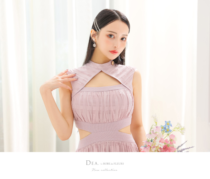 3. DEA. ディア バイ ローブドフルール バストオープンカット×ウエストスリットチェックフレアロングキャバドレス de3333-1