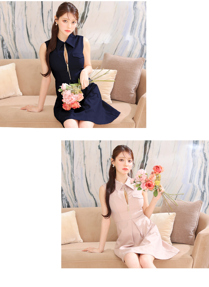DEA. ディア バイ ローブドフルール センタージップシンプルノースリーブレディキャバドレス de3337-c
